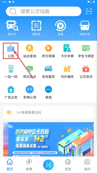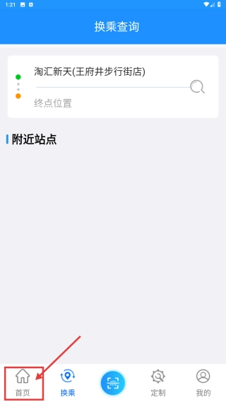 打开公交分类,点击底部的首页按钮,进入首页功能界面。