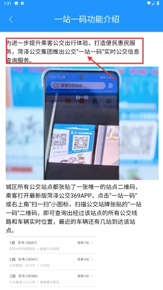 在一站一码功能介绍详情页面,您可以了解到通过站点对应的二维码,查询公交路线以及车辆实时位置的功能。