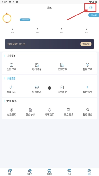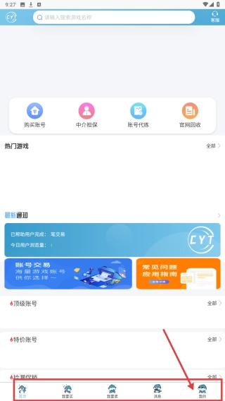 打开账号交易类应用后,点击底部的“我的”选项,即可进入个人中心页面。