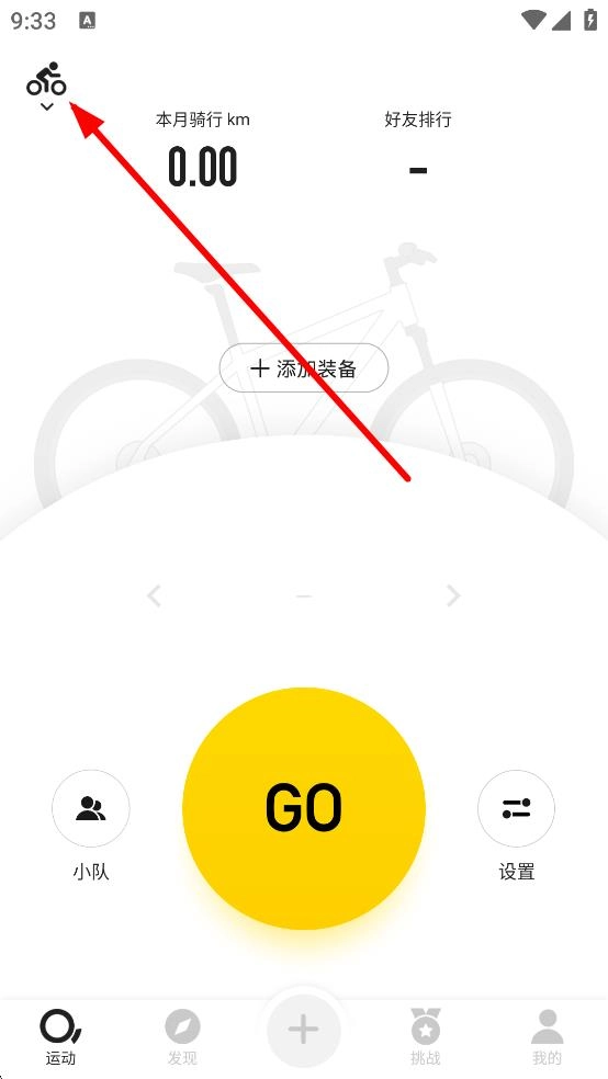 在运动页面,点击左上角的骑行图标,即可进入运动类型选择页面。