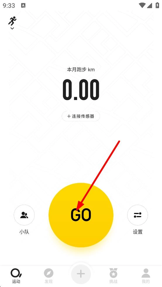 在跑步运动页面,点击那个黄色的GO按钮,就能启动跑步运动了。