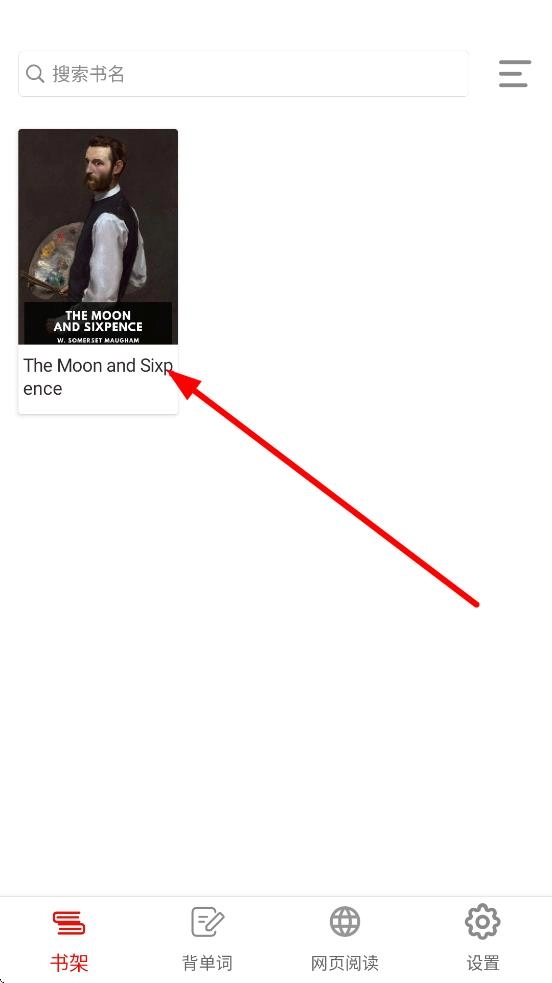 在书架页面,点击选中的书籍封面,即可进入书籍阅读页面。