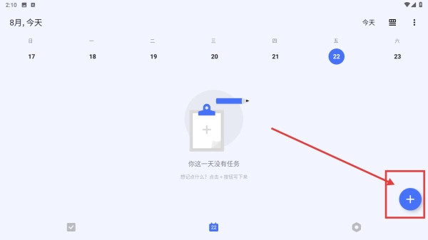 在日历视图界面,点击右下角的+按钮,即可调出任务输入框,为添加新任务做好准备。