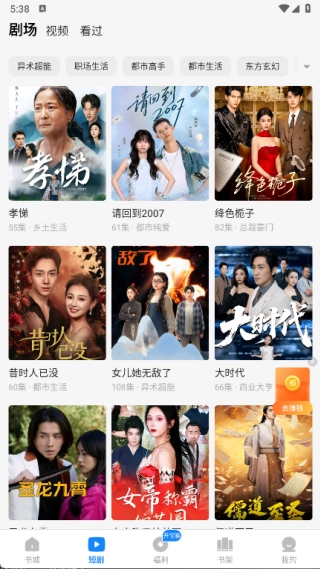短剧中包含各式各样精彩的剧场内容,能让你第一时间欣赏到最精彩的短剧,此外还有视频板块和看过板块。