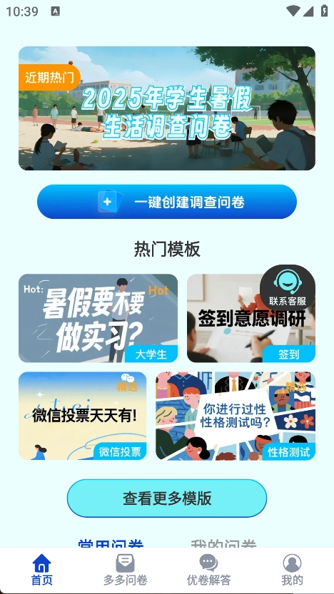 优卷多多是一款功能强大且操作简便的问卷调查制作工具。它借助丰富的模板资源、灵活的题型选择以及高效的数据统计分析功能,满足了用户多元化的调研需求。不管是企业市场调研、学术研究,还是日常小调查,这款软件都能轻松胜任。要是你需要一款高效便捷的问卷调查工具,优卷多多无疑值得尝试!