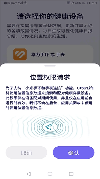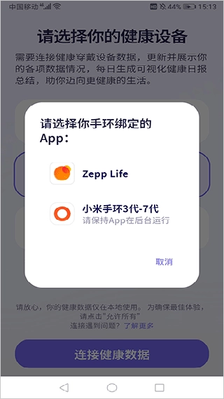 使用微信登录后,选择连接华为手表或者小米手环的选项。