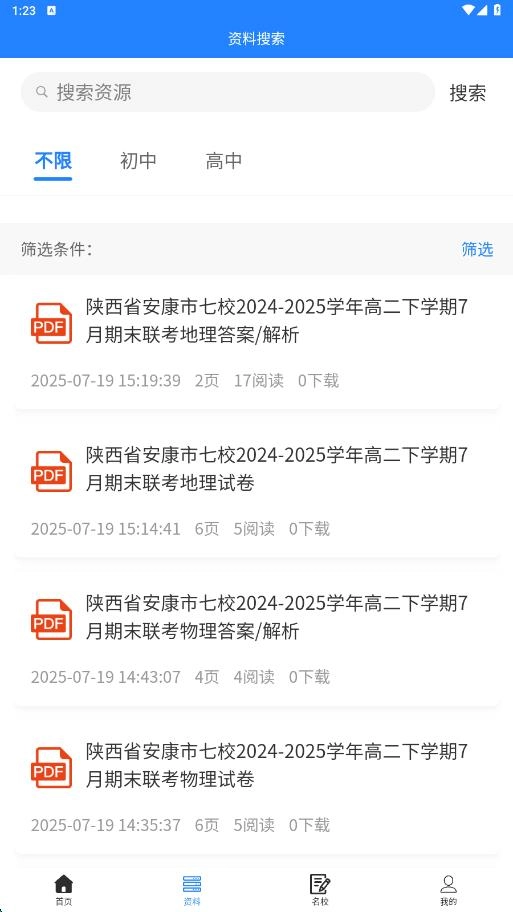 在软件下方的资料板块里,能找到初高中学习所需的各类必备试卷资料。