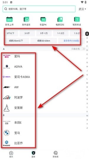 登录后轻点底部导航栏的“选车”按钮,就能马上进入智能选车系统。