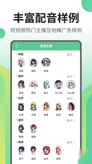 这个应用真的很好用,里面提供了多种发音人可供挑选,而且音色和真人几乎没什么差别,一定要支持一下!!!
