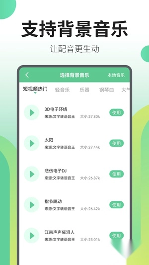 海量背景音乐资源,支持自由添加背景音效,提供定制功能。