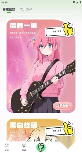 挑选自己钟爱的二次创作绘画形式,随后进入对应的绘画界面。