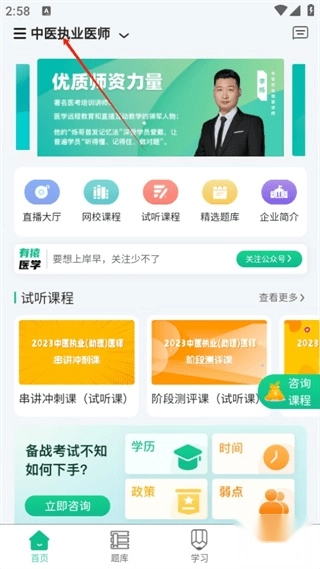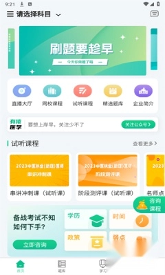 成功登录后,系统会引导您从执业医师、助理医师等专业类别里挑选目标考试科目。