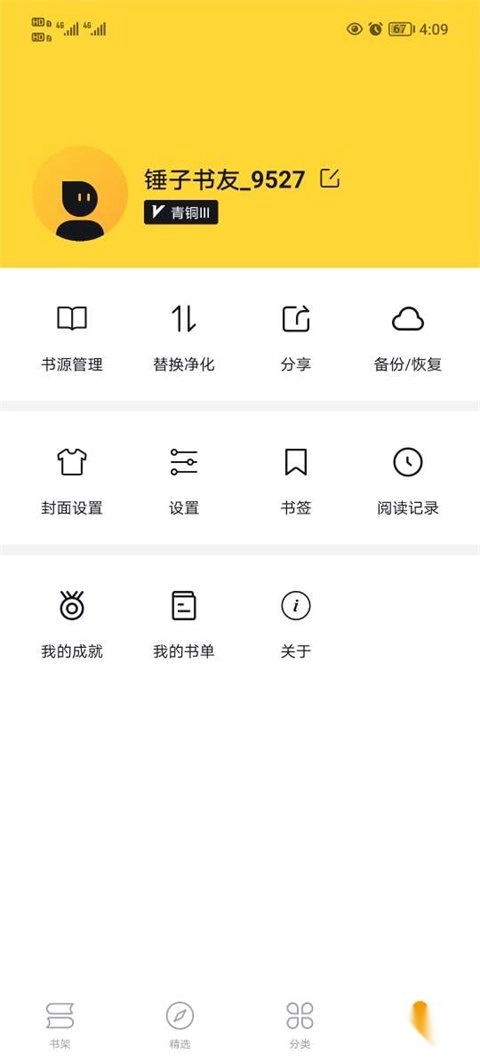 首先进入【我的】页面,接着在这个页面里点击【书源管理】。