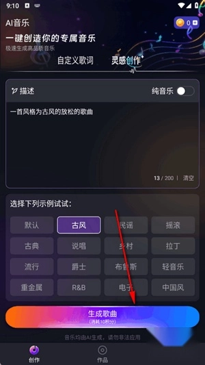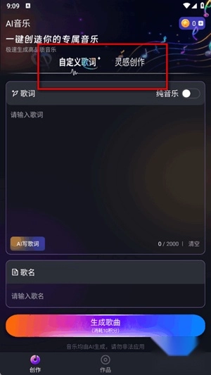 在输入框填写创作需求后,一键点击"生成"按钮。