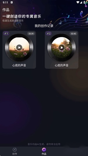 系统会自动完成创作流程,产出的作品将被存放在“我的作品”列表里。