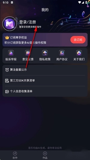 进入"我的作品"页面,选择您想要操作的歌曲。