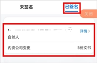 在“已签名”页面能够查看办理公司的数据信息,所有签名任务均已完成。
