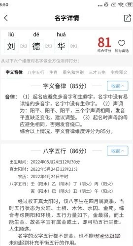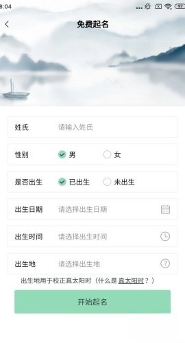 无需注册,只要输入姓氏和生辰八字,就能轻松起出好名字。