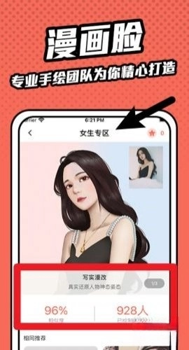 拥有照片一键生成漫画的功能,可快速把自拍或照片转换成卡通漫画风格的图像。