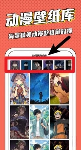 进入动漫壁纸库后,点击顶部的分类标签,就能浏览不同风格的动漫壁纸,还可以自由挑选并更换喜欢的背景图。