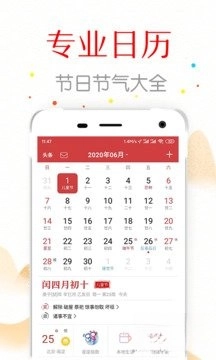 打开应用后,就能查看万年历的相关信息,还可以实时查询公历与农历的日期。