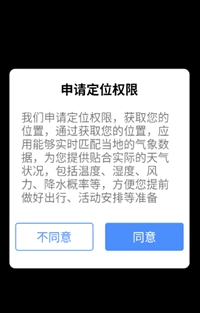 之后会弹出“申请定位权限”的提示窗口,点击“同意”按钮即可进入下一步操作。