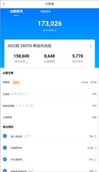 进入界面后,先选择全款购车或其他购车方式,接着选定你的车型、裸车价格等信息,就能计算出大致的购车价格了。