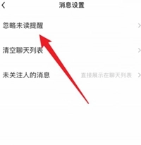 进入到消息设置页面后,点击”忽略未读提醒“按钮。