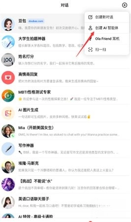 在弹出的选项中选择【创建AI智能体】。