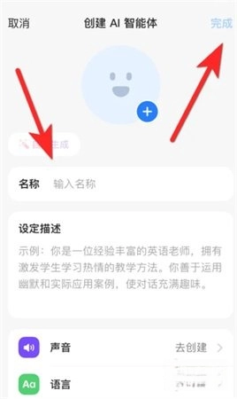 在输入智能体的名称之后,点击页面右上角的【完成】按钮,就能顺利完成AI智能体的创建。