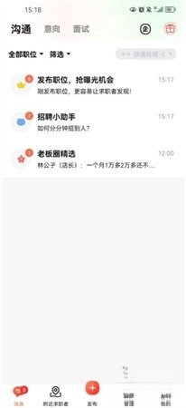 采用高速浏览技术,职位、人才等信息无需等待即刻呈现;支持电话、短信、帮帮等多种沟通方式一键触发,企业与求职者可快速建立联系,大幅提升对接效率。