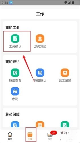 也可以通过下方导航栏,先选择「工作」选项,再点击「工资确认」,用同样的方式进行查看。