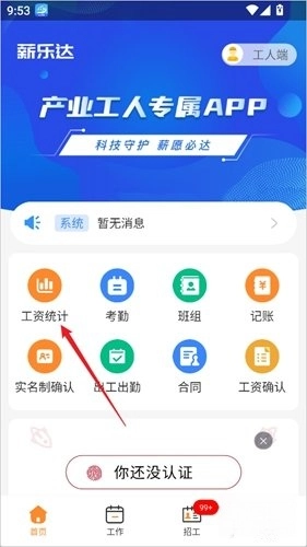 打开薪乐达App,点击首页的「工资统计」。