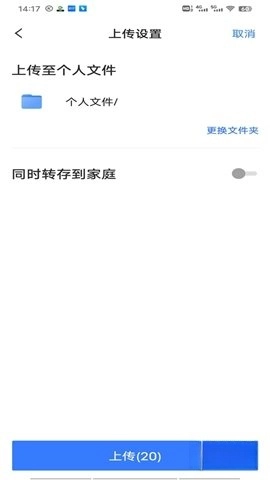 最后点击“更换文件夹”,选定要上传照片的位置,接着点击“上传”就可以了。
