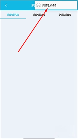 在我的好友页面,能够查看所有好友的信息,也可以添加好友。点击右上角的三点按钮,选择扫码添加的方式,具体操作如图所示。