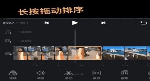 长按视频片段就能前后拖动素材调整顺序,这种设计很符合直觉。