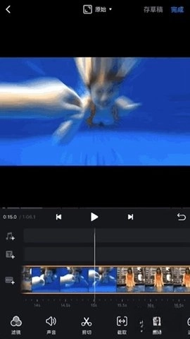 用两根手指进行缩放操作,就能展开或收起素材。不少手机剪辑应用对片段时长的最短限制是0.5秒,不过用这种方式剪辑出来的画面,有时候精准度会有所欠缺。