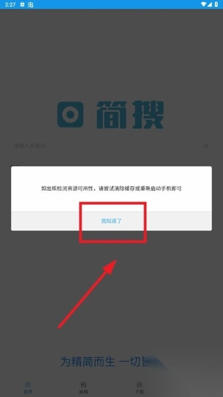 打开简搜,点击知道了