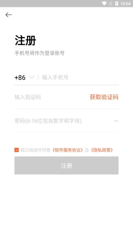 输入手机号验证码,设置密码进行注册。