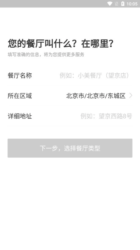 填写餐厅的具体名称,确定其所在的位置,并详细填写该餐厅的地址信息。