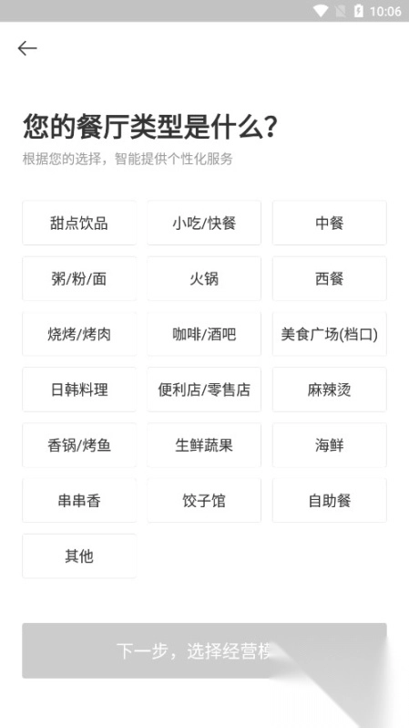 点选餐饮店铺所经营的餐品类型。