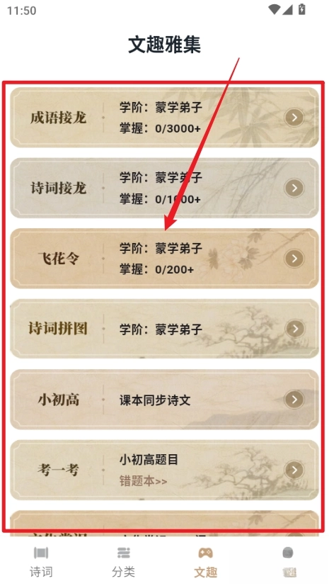 文趣板块包含各类接龙、飞花令等趣味答题功能,感兴趣的话不妨体验一番。