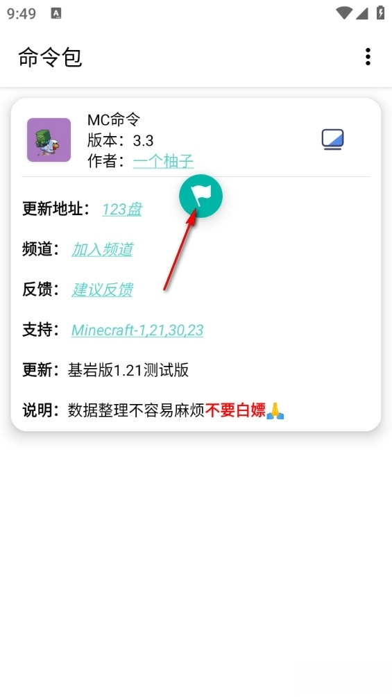 命令包正在持续更新迭代:目前已更新到3.3版本,本次更新修复了列表窗口数据显示错误的问题,同时解决了部分指令存在的bug,保证1.21版本新增指令可正常进行查询与使用,并且完成了对Android8.0及更高版本系统的适配工作。