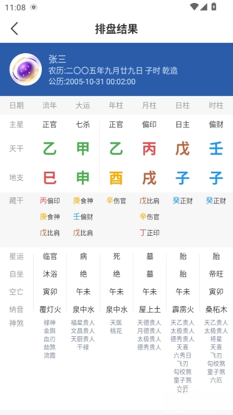 跨平台兼容:适配安卓和iOS双系统,界面简洁明了,操作顺滑流畅,新手仅需30秒就能生成完整命盘。