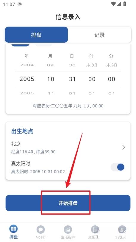 填写完信息点击下方开始排盘