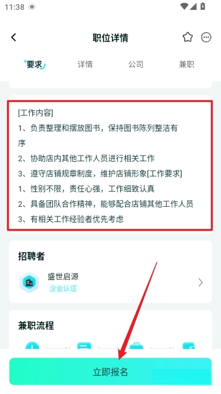 查看工作内容点击报名,并咨询兼职信息