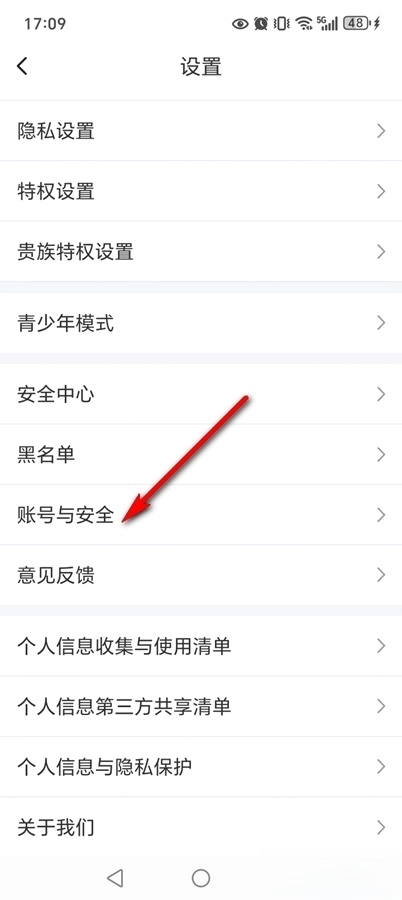 点击【账号与安全】
