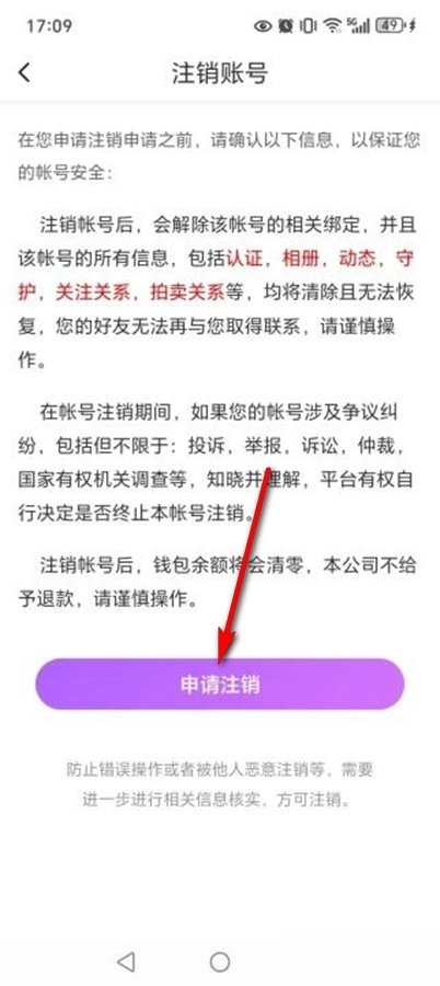 点击【申请注销】
