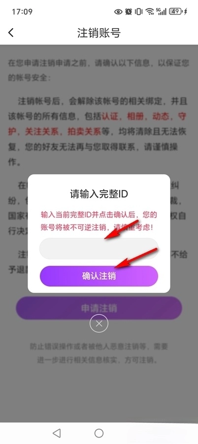 输入ID,点击【确认注销】
