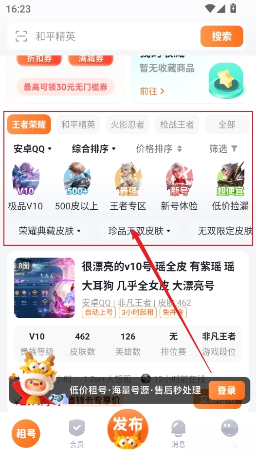 海量账号资源:绝版皮肤、满级载具、V10高端神号一应俱全,满足玩家多样化需求。